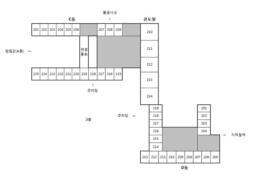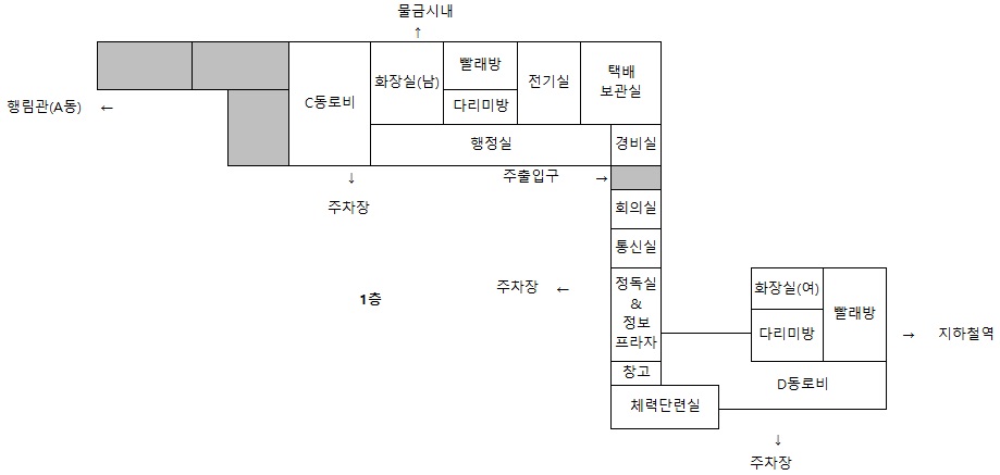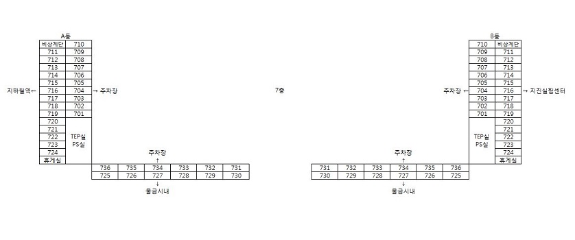 | 수용인원(명) | 94 | 104 | 112 | 148 | 124 | 74 | 72 | 728 | ||