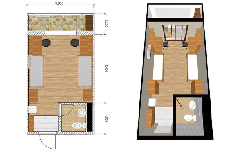 행림관 5층 1인실은 2인실 가구로 배치되어 있음